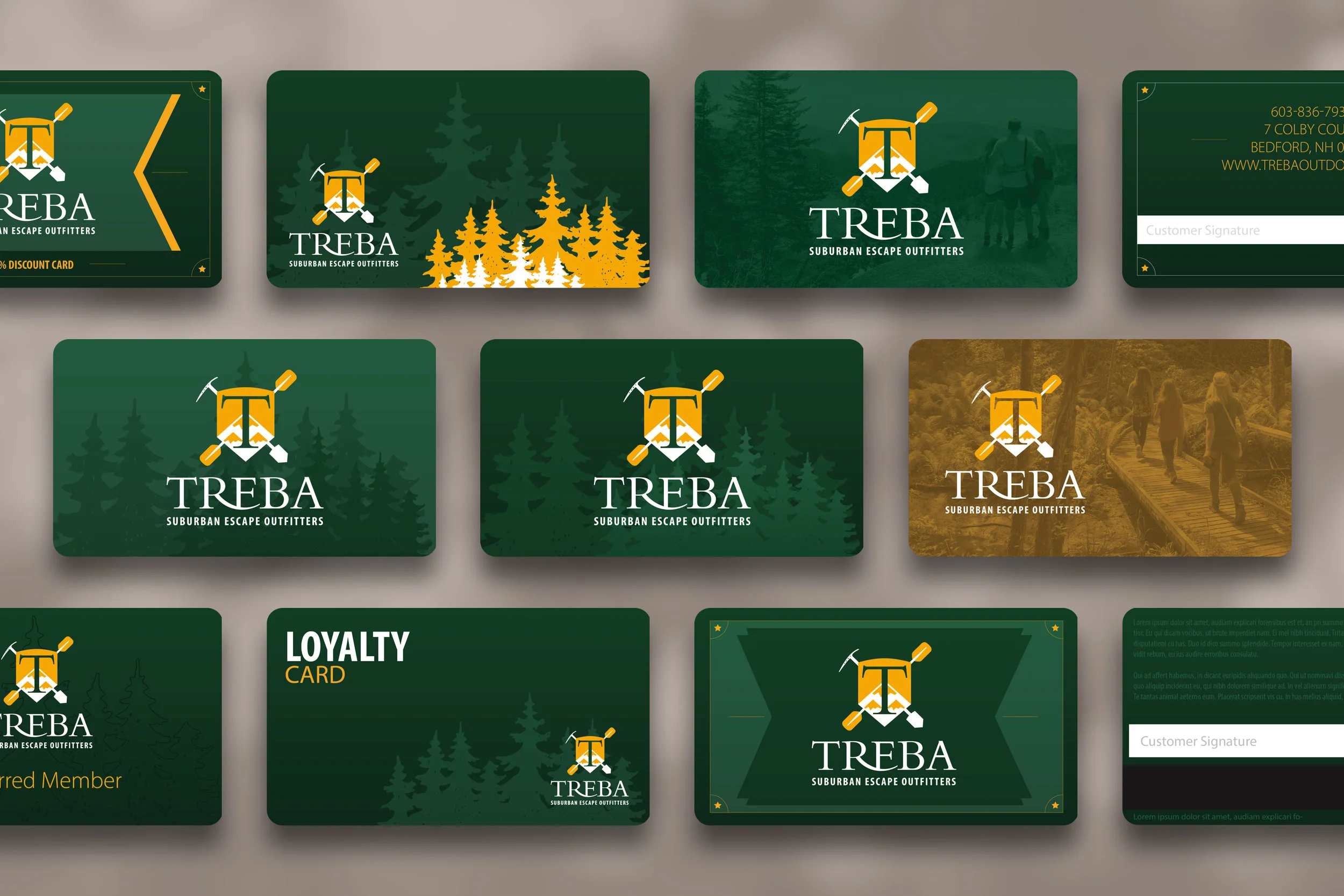 After bringing the previous mocks to the business owner, they gravitated towards the centered, simplistic design featuring the outdoors. They loved the redesign of the logo, and began rebranding their retail location, focusing on the targeted color scheme. A few supplementary marketing materials were provided to the business to market their new loyalty card on social media, in store, and on their website.